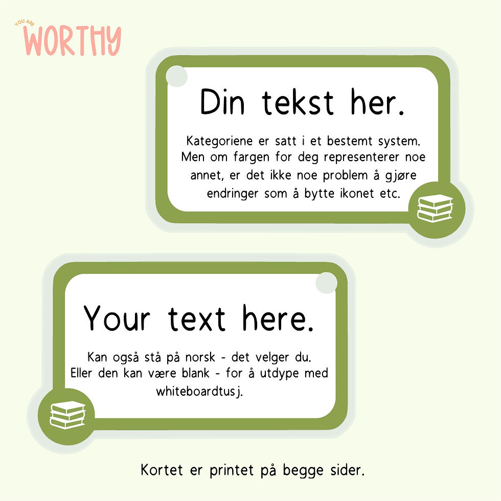 Änsker du å lage ditt helt eget system? Om man ∅nsker å f∅lge fargekodene og symbolene på de forhåndsbestemte kategoriene, så kan man det.